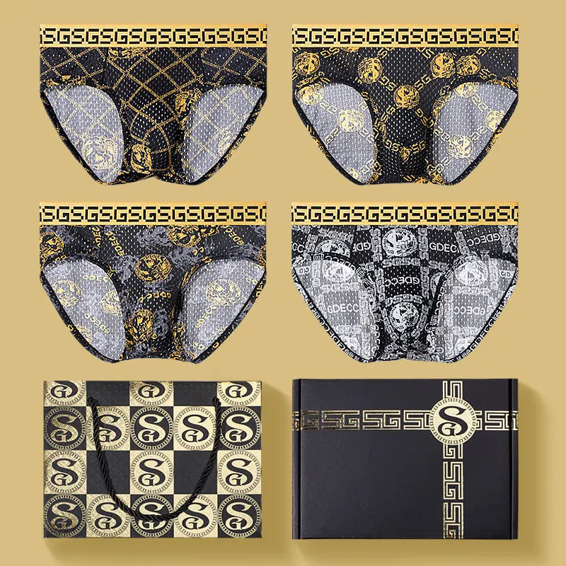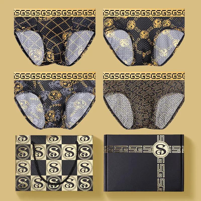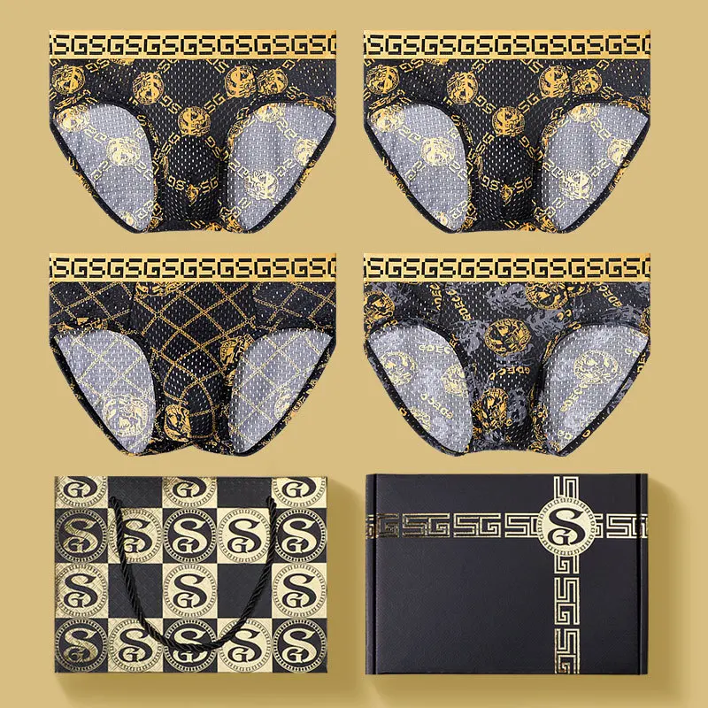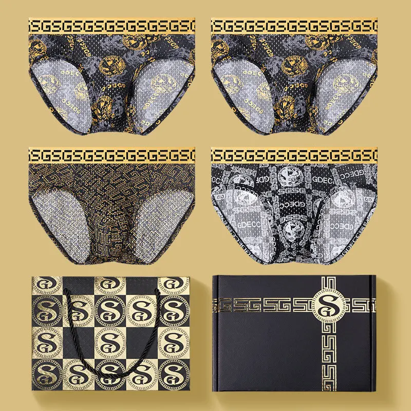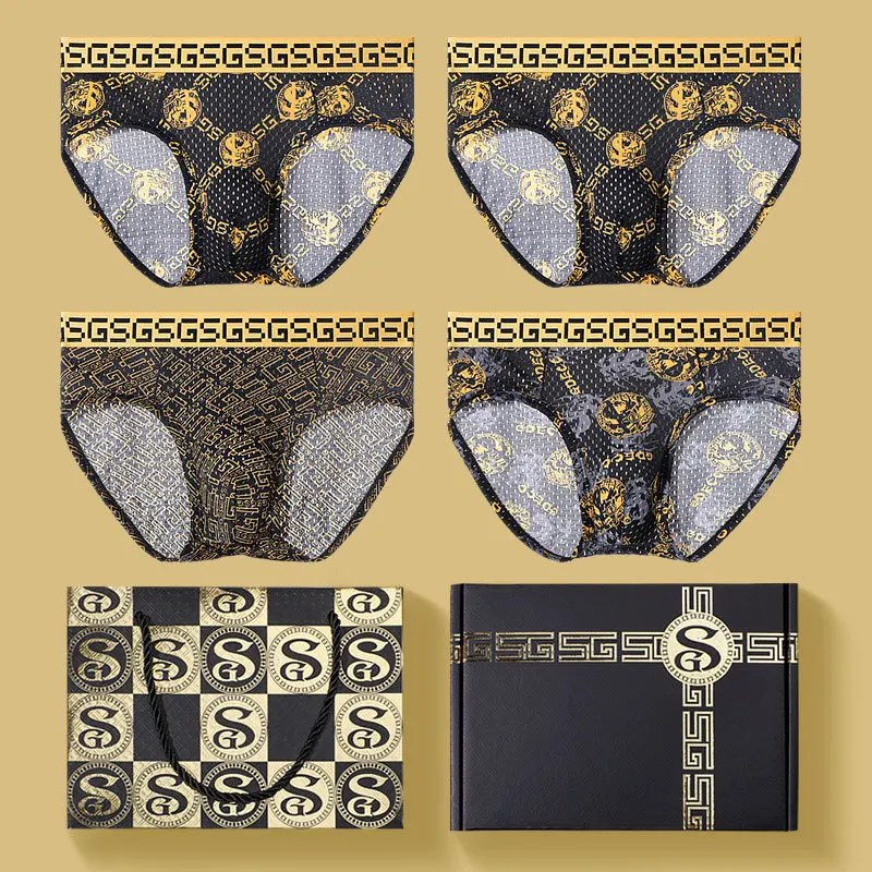 3 Pieces Gift Box Gift Printing Ice Silk Underwear Men Boxer Pants Underwear Men