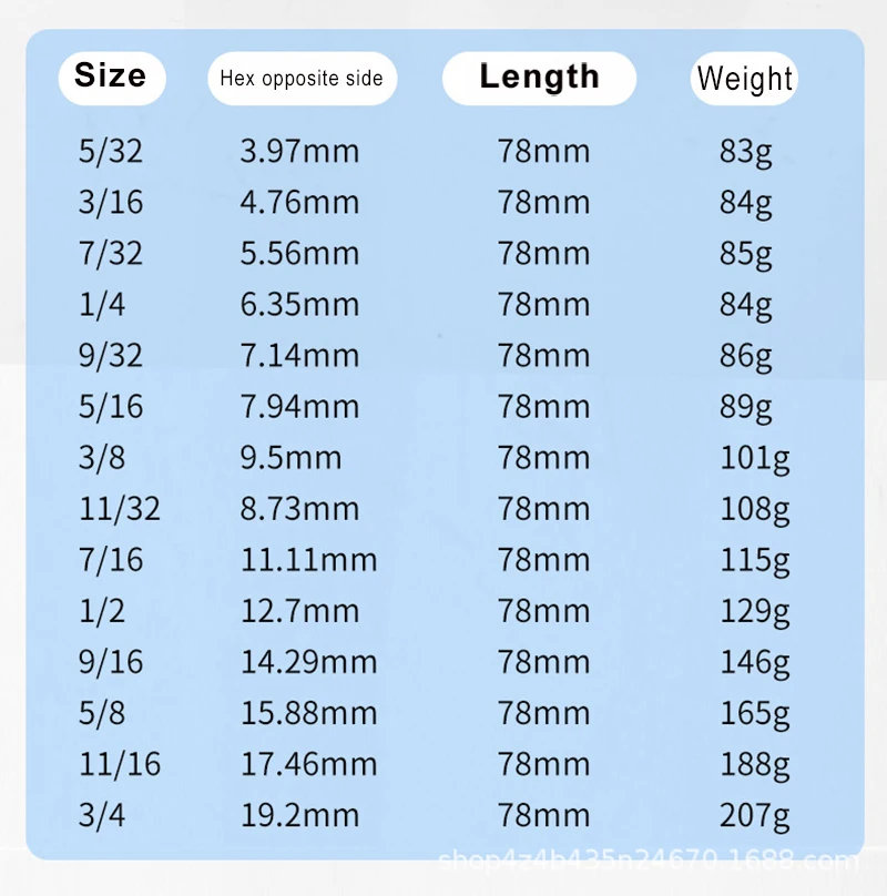 Size: 3/16 5/16 7/16 5/32 9/16 5/8 9/32 1/4 3/8 1/2 11/16 3/4 11/32 7/32 1/8 7/64