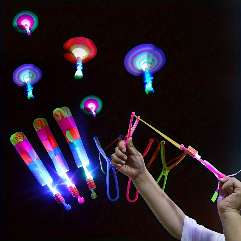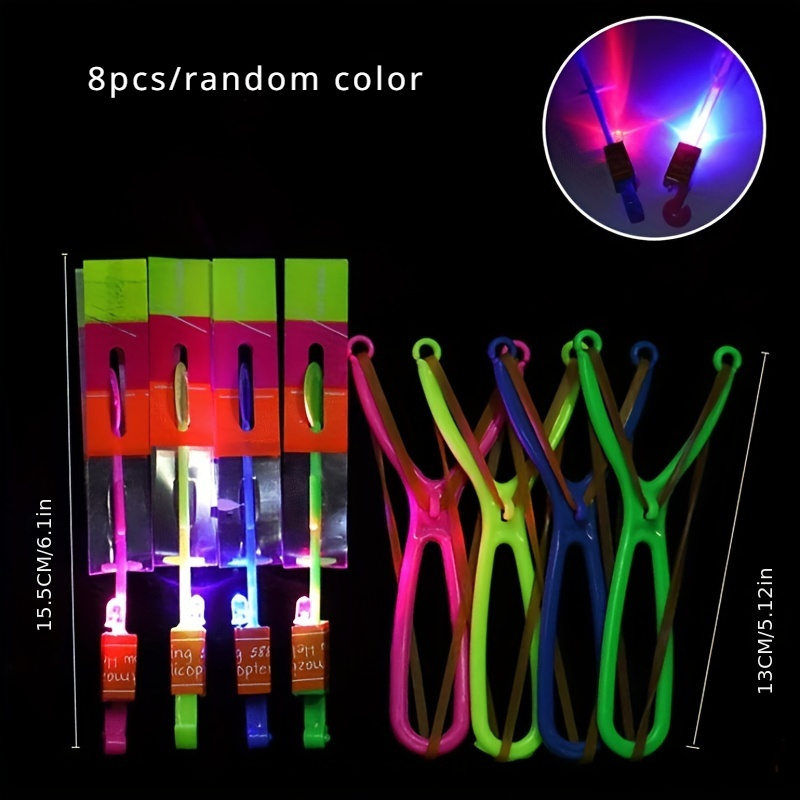 8PCS LED Lighting Up Luminous Toy, Flying Slingshot, Flying Toys, Fast Catapult Luminous Toy,Halloween Glow In Dark Party Supplies, Christmas Party Favors, Holiday Gifts, Children Gifts, Outdoor Toys