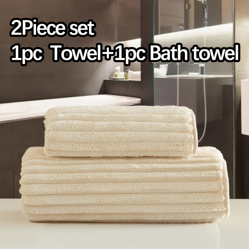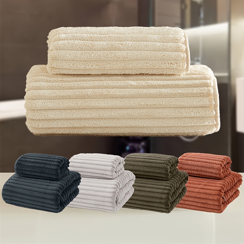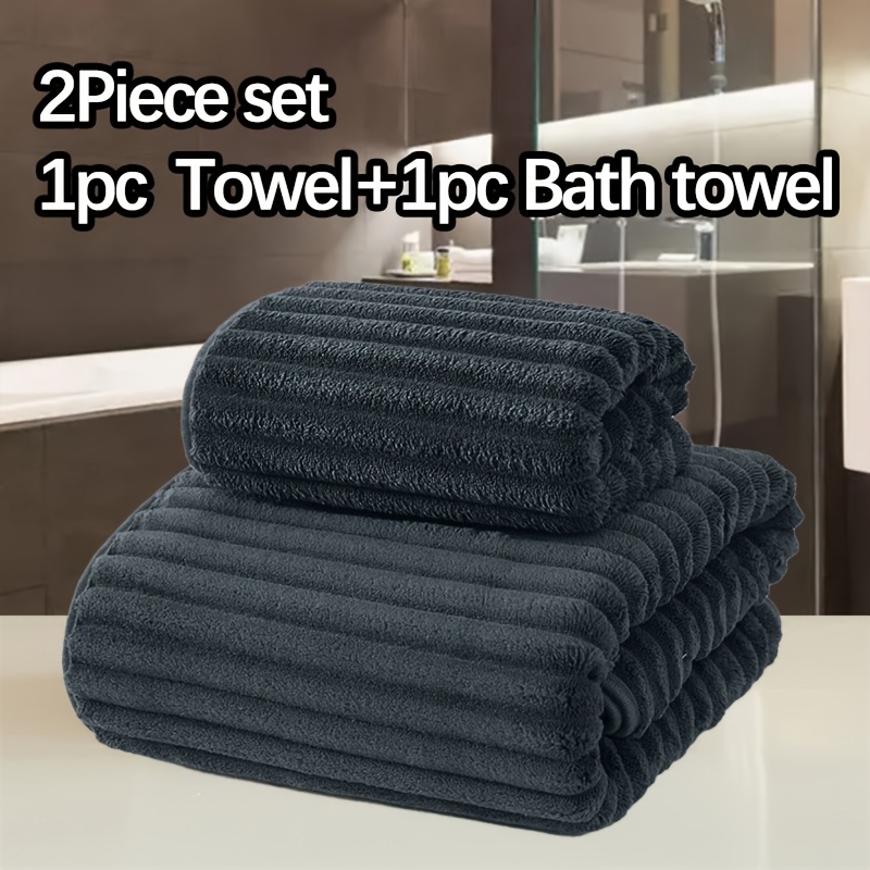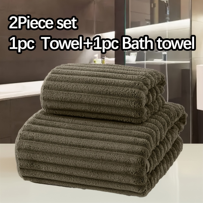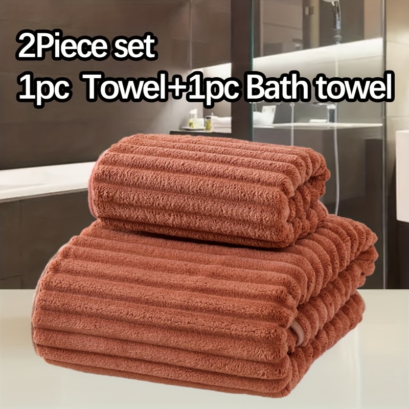 WF dark candy bar 1 hair + 1 bath set / 2pcs set Coral Velvet 1 13.78*29.53inch towel and 1 27.56*55.12inch bath towel set, soft quick drying absorbent, essential bathroom items for children and adults, Halloween Thanksgiving Christmas gift